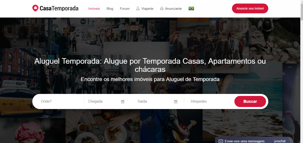 Para reservar um imóvel na modalidade de Aluguel de Temporada você precisa acessar o site https://casatemporada.com em nossa homepage você irá preencher quatro campos de busca.